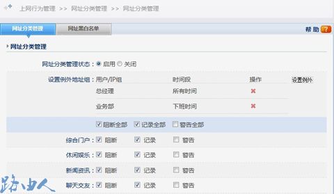 按照如上步骤配置,磊科NR285P路由器可以分时间段,对不同的用户/IP组进行不同的上网行为管理。