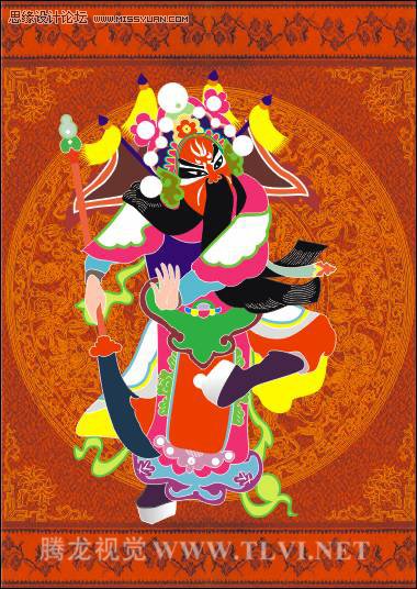 (21)参照上面为腰带填充图案的方法,选择刀刃图形,并再次打开“填充图案”对话框,首先单击“装入”按钮,将本书附带光盘中的“青龙偃月刀.jpg”文件导入,然后再对相应选项参数进行设置,完毕后单击“确定”按钮为刀刃图形填充图案效果,如图4-88所示。