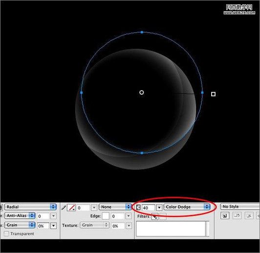 4、再次复制一个圆,然后模式调整为颜色减淡,透明度设置为 40%。