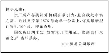 外贸书信是同外国人及有关方面进行经济贸易或业务往来的专用信函,大致包括如下一些方面:
